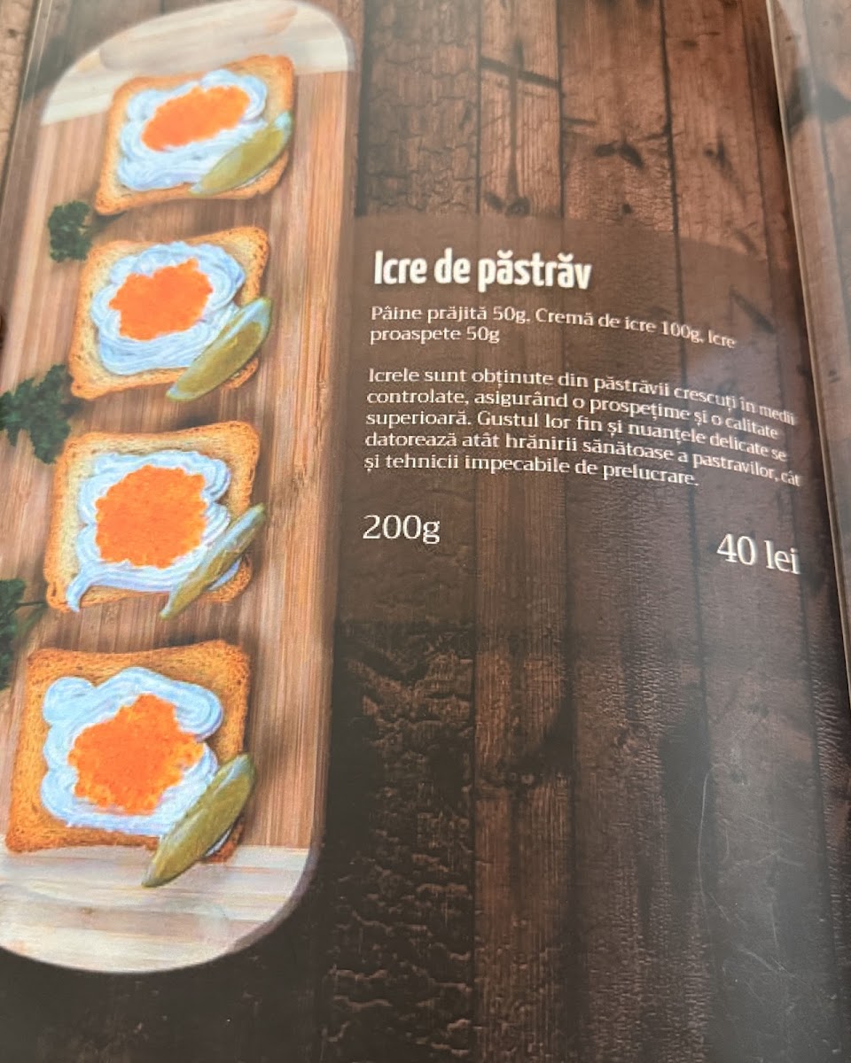 Punct gastronomic local is a standout fish restaurant nestled in the heart of Râșnov, Romania, offering a true taste of freshness and tradition. Located within the “Ursu” trout farm, the menu centers on locally farmed trout, showcasing expertly prepared dishes that highlight the delicate flavors of this fresh fish. Signature dishes like the chef’s special grilled trout, served with garlic sauce and polenta, captivate with their simplicity and depth. More than 70% of ingredients are homemade, reinforcing the commitment to authentic local flavors.